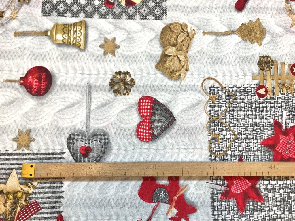 Bavlna režná červené vánoční ozdoby na šedé