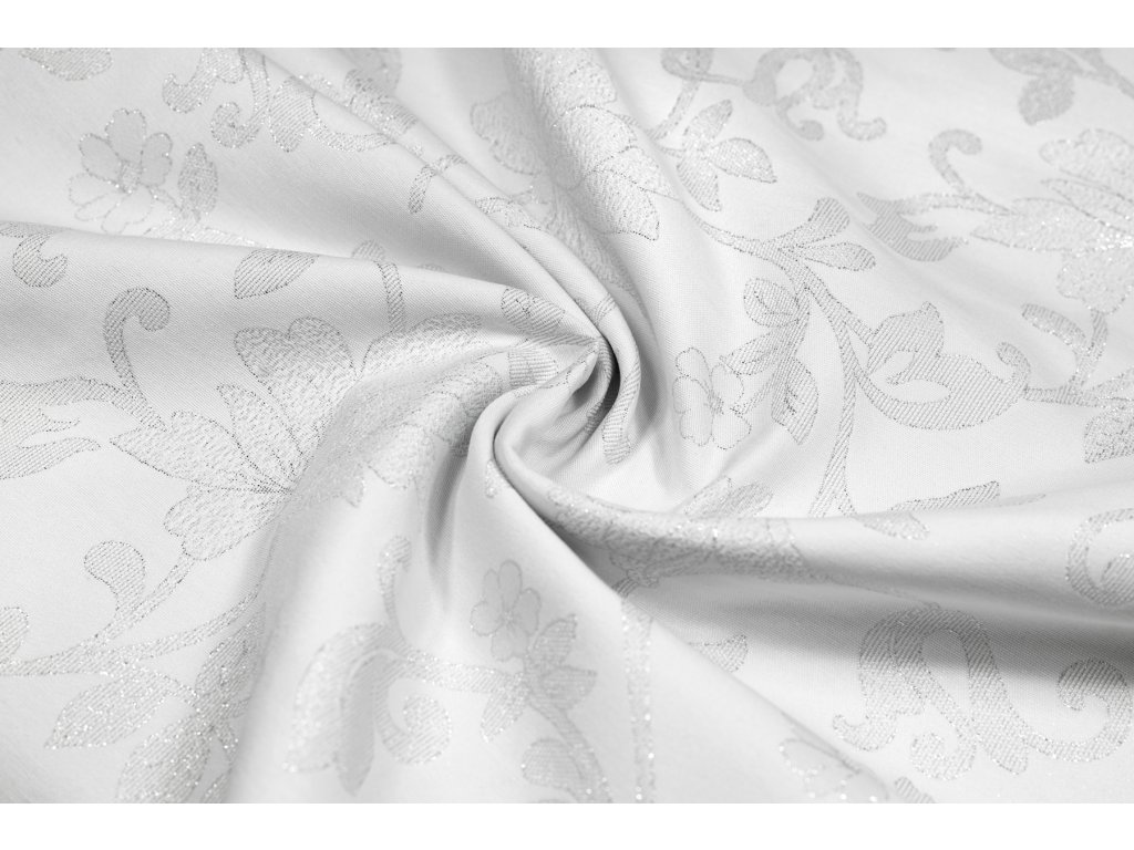 Bavlna režná květy stříbrné na bílé