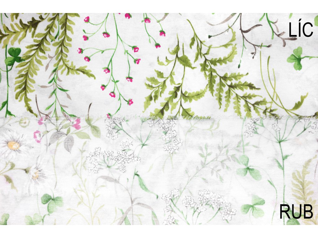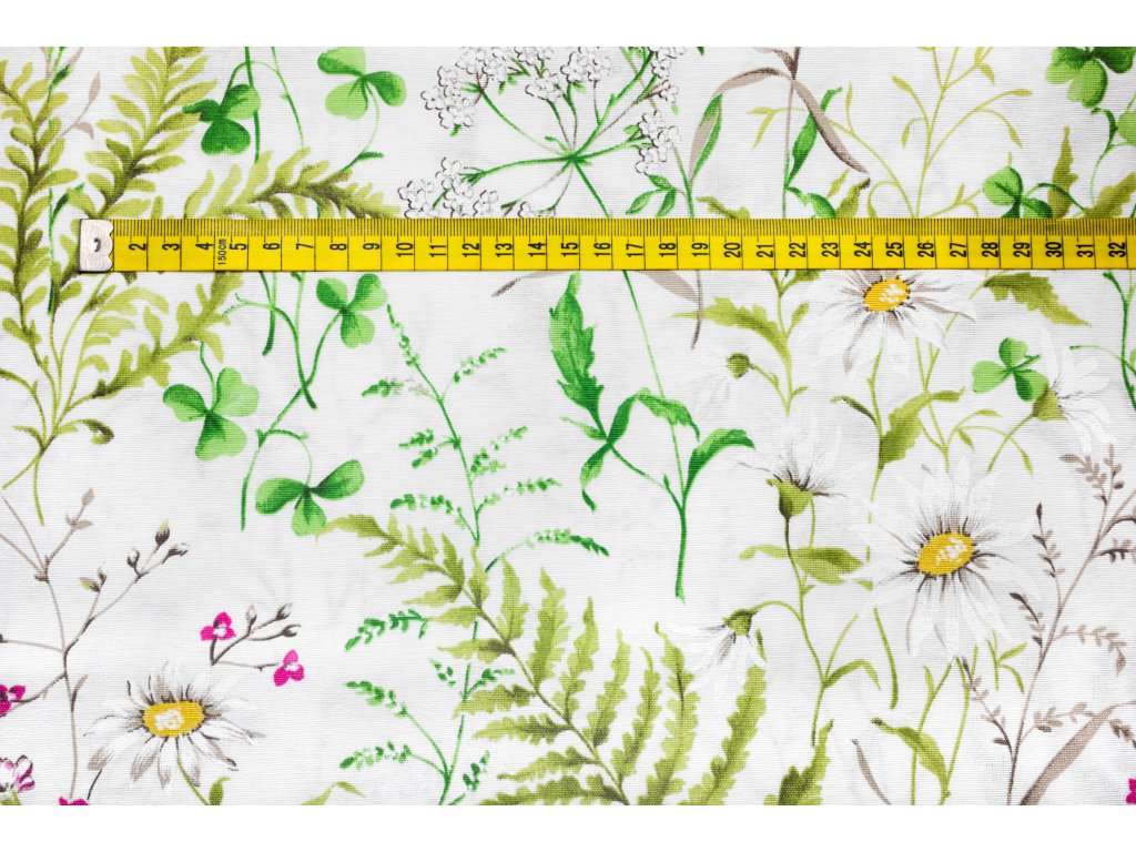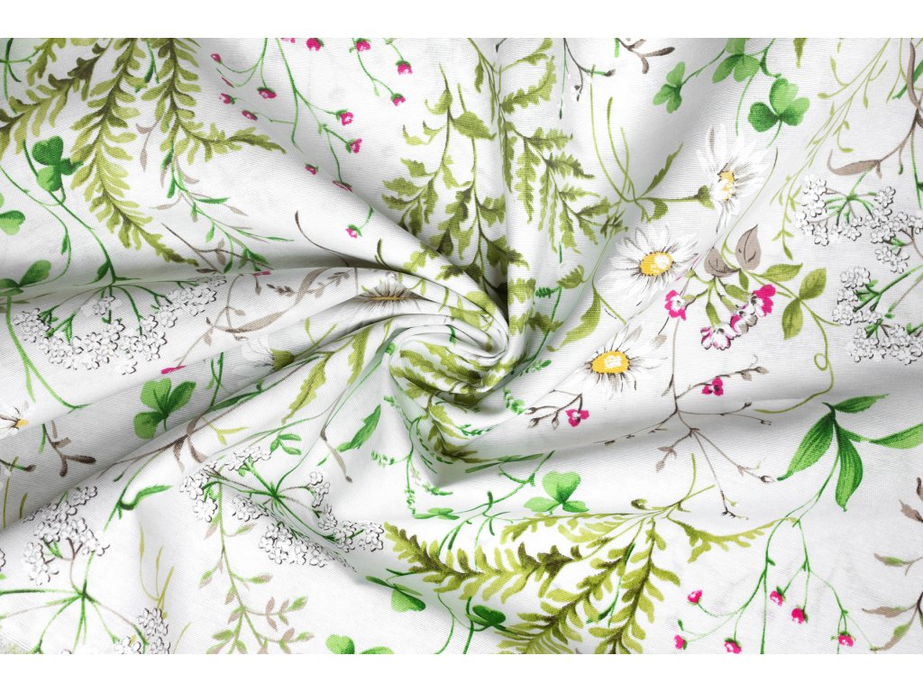 Bavlna režná luční kvítí s kapradím na bílé