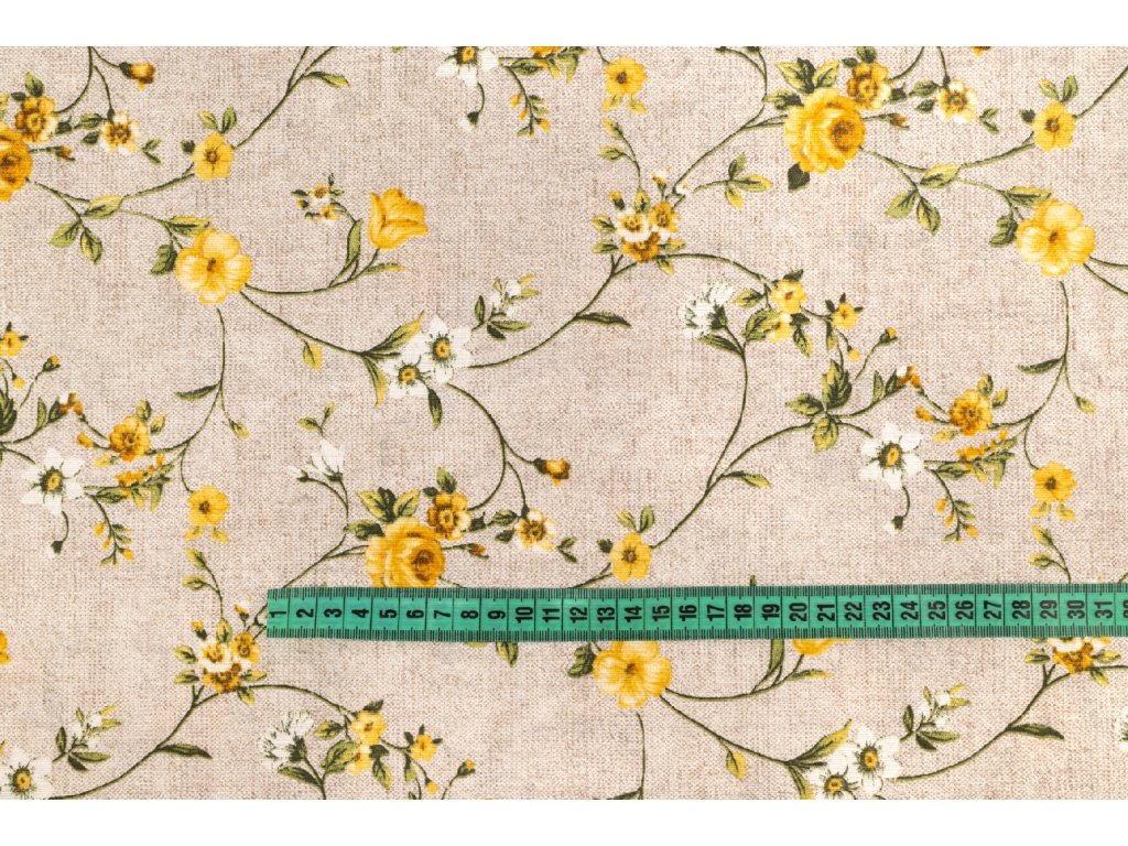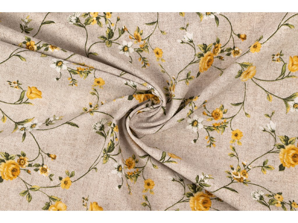 Bavlna režná popínavé kvety žlté