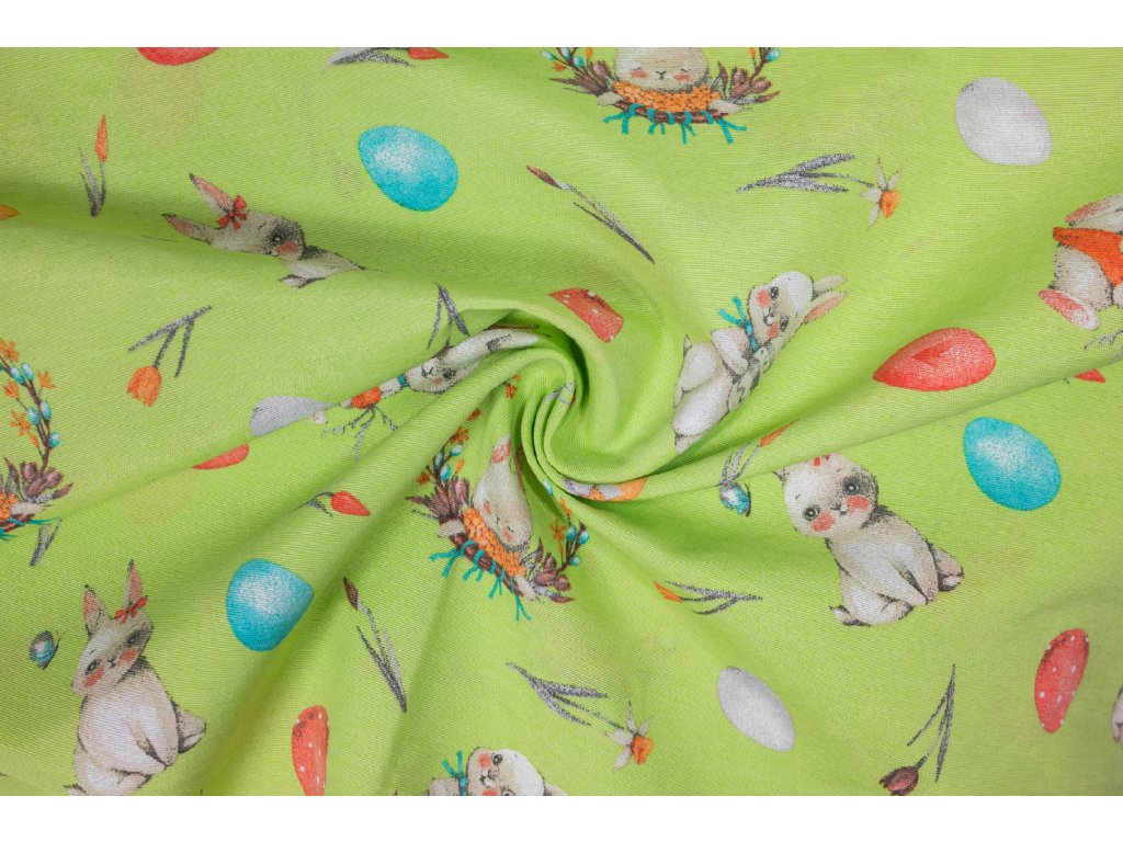 Bavlna režná velikonoční vajíčka a zajíčci na světle zelené