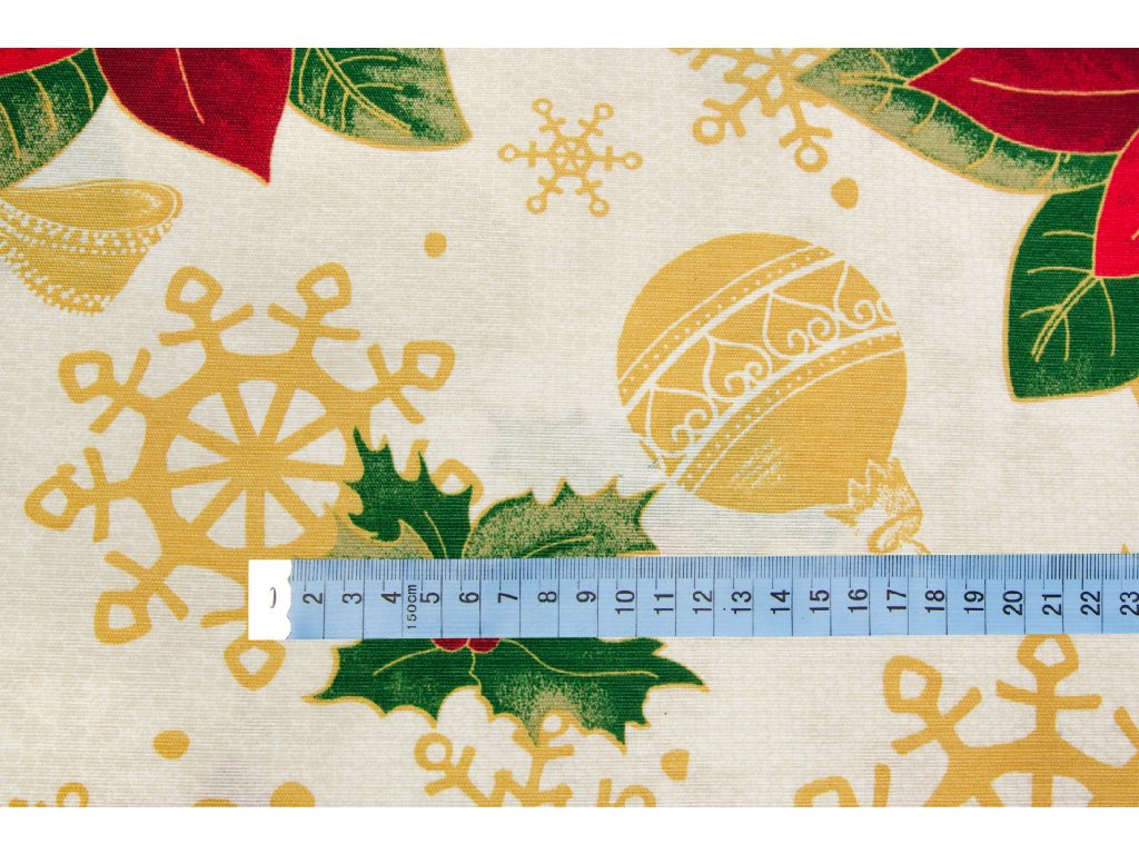 Bavlna režná vánoční hvězdy a cesmíny