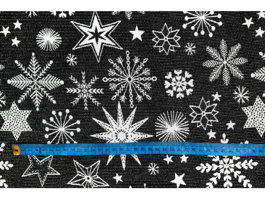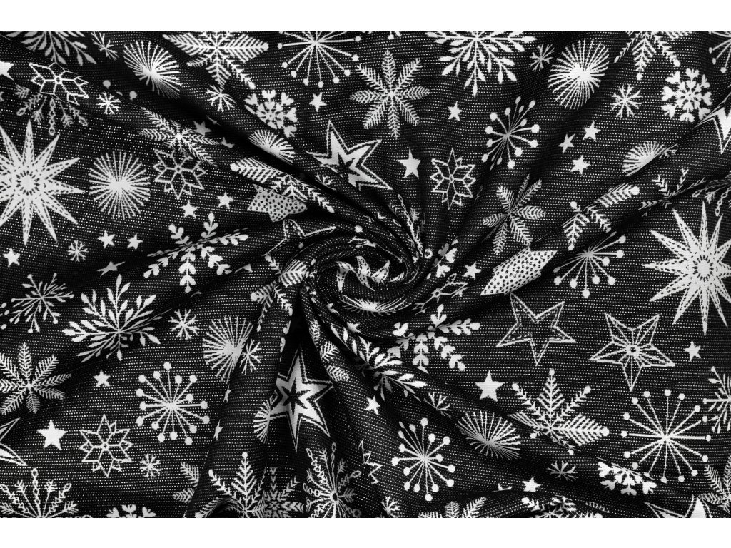 Bavlna režná vločky so strieborným glittrom na čiernej