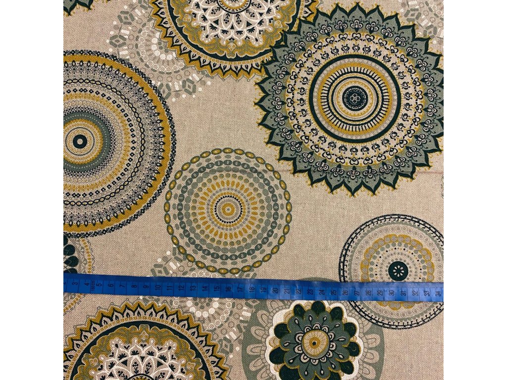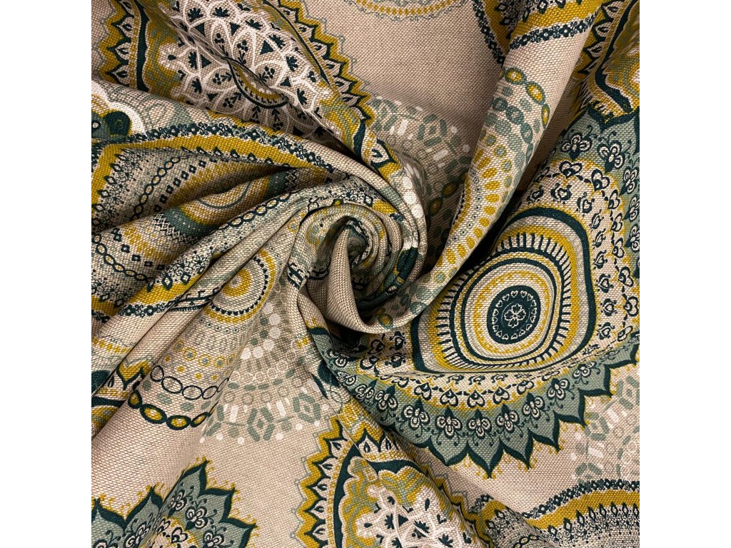 Bavlna režná zelené mandaly