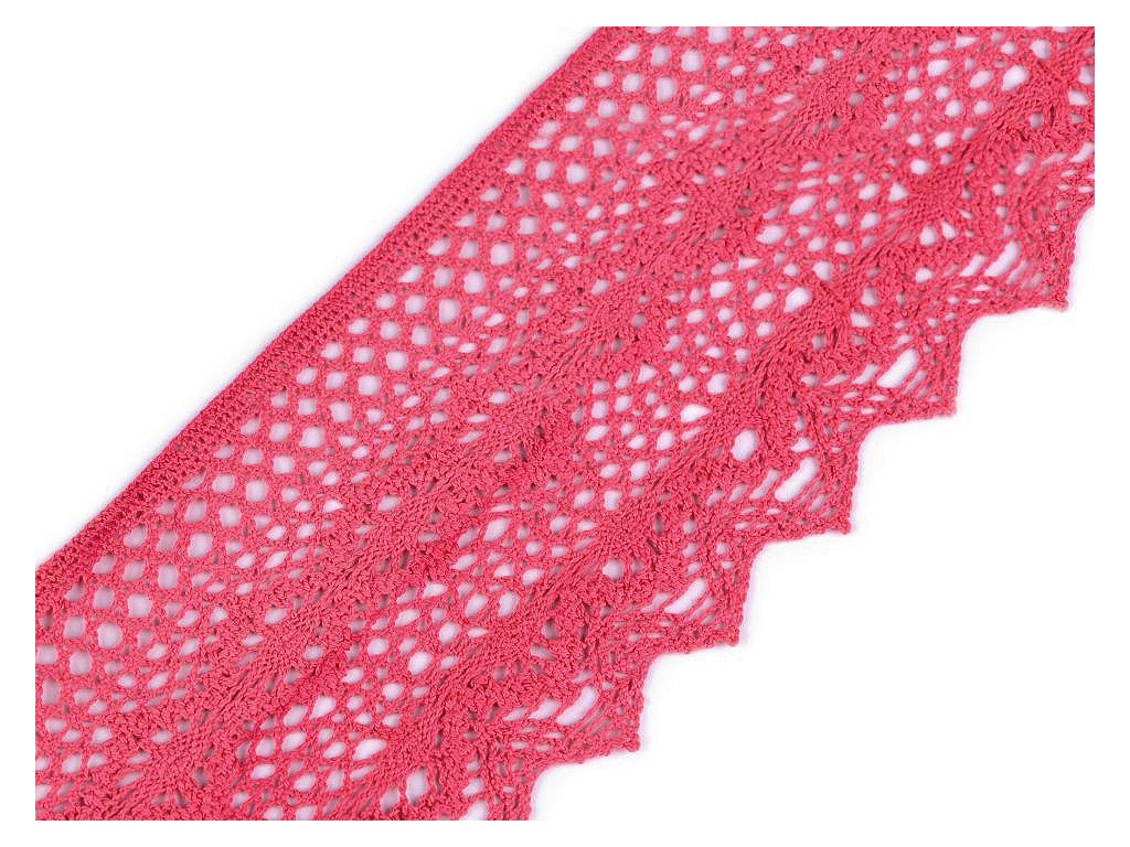 Široká paličkovaná krajka vdechne vašim výrobkům nádech vintage stylu. Jednu stranu má rovnou, druhou zdobí obloučky.