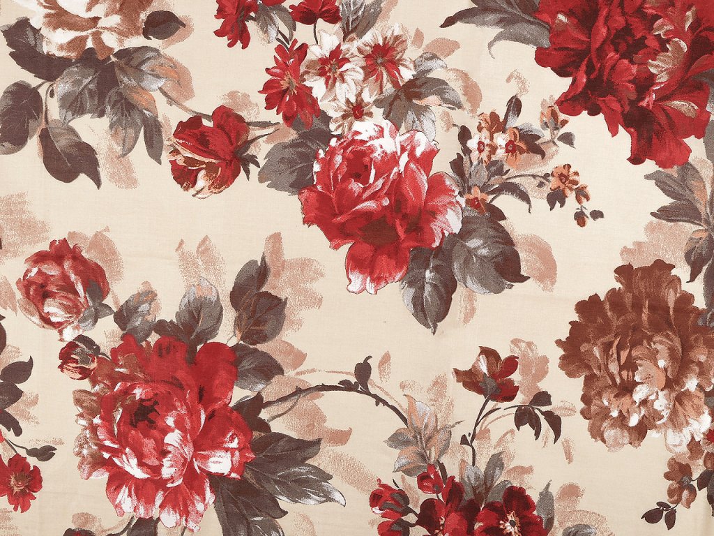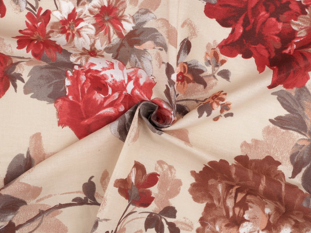 Bavlněná látka s květinovým potiskem vnese do interiéru nádech nostalgie a romantiky. Využijete ji na šití povlečení, polštářů, závěsů, ubrusů, prostírání, tašek, pytlíků a různých bytových dekorací a doplňků.