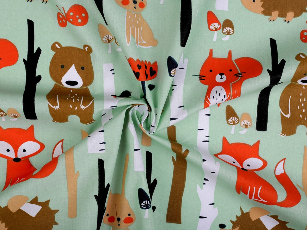 Bavlněnou látku s motivy zvířátek využijete na šití polštářů, povlečení, závěsů, pytlíků, tašek, mantinelů do postýlek i hnízd pro děti.
