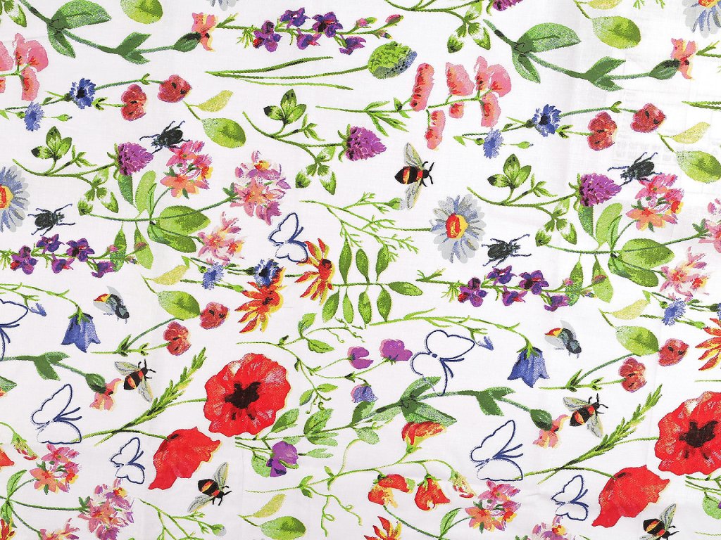 Bavlněná látka / plátno luční květy šíře 220 cm