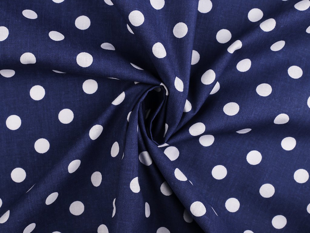 Puntíkovanou látku využijete na šití polštářů, povlečení, ubrusů, ale třeba i letních halenek a šatů. Je měkká a příjemná na dotek. Bílý podklad lehce prosvítá.