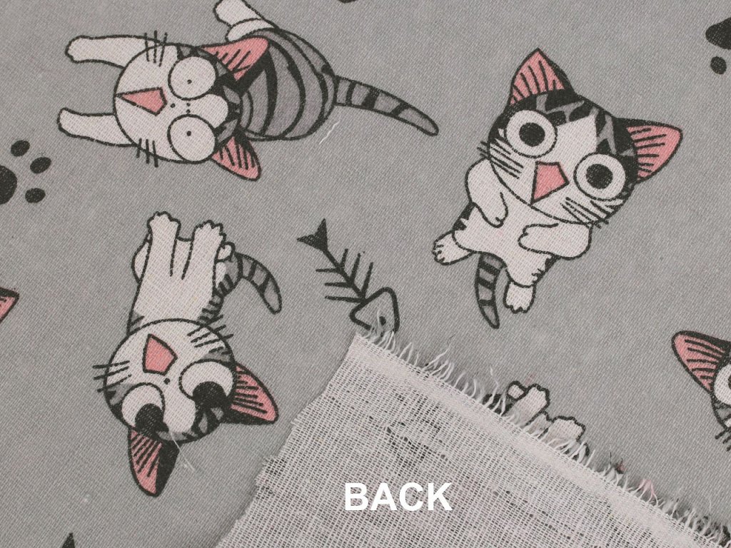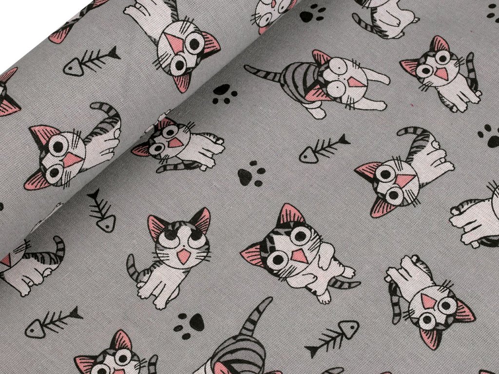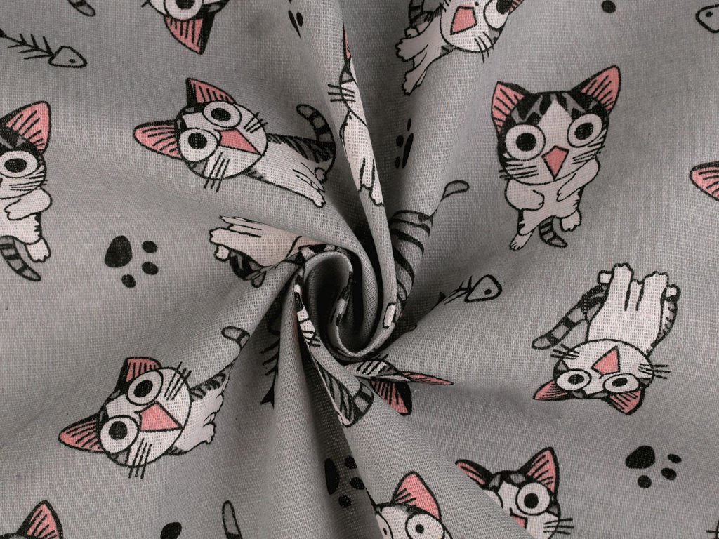 Látku imitující len zdobí veselý motiv s kočkami. Využijete ji na šití ubrusů, běhounů, prostírání, dekoračních polštářů, tašek, dětských teepee apod.