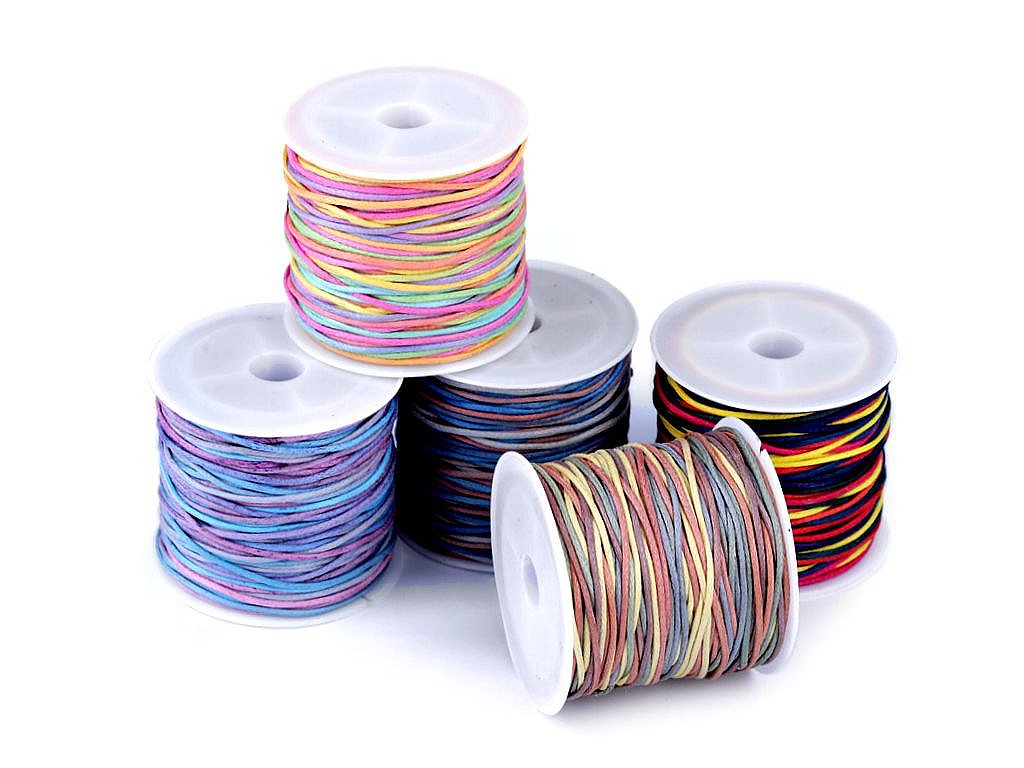 Použitie: Šnúra je vhodná ako návlekový materiál pri výrobe náhrdelníkov a náramkov. Vďaka tomu, že je tenká, využijete ju na náramky tkané technikou macramé (drhané). Môžete ju použiťt i k výrobe rôznych dekorácií, napr. lapačov snov, alebo k originálnemu baleniu darčekov.