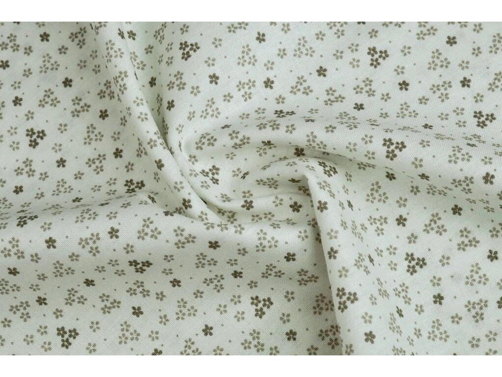Bavlněné plátno béžové kytičky na bílé