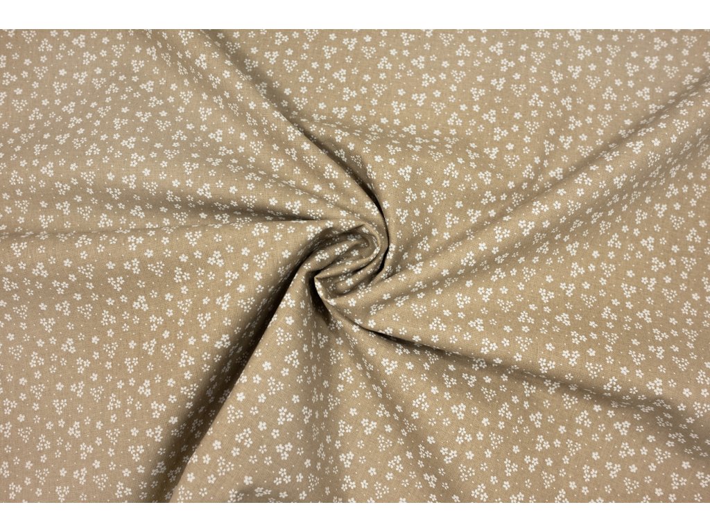 Bavlněné plátno bílé kytičky na béžové