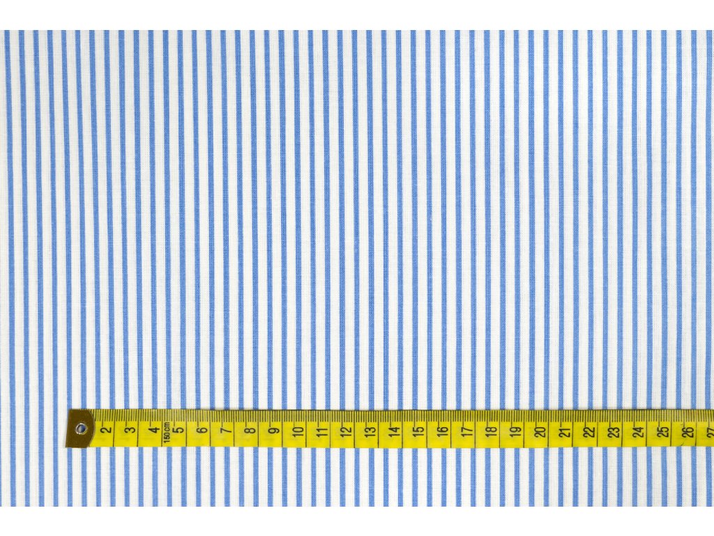 Bavlněné plátno bledě modré proužky 2 mm na bílé