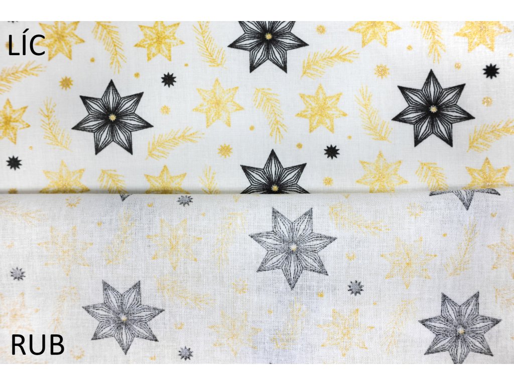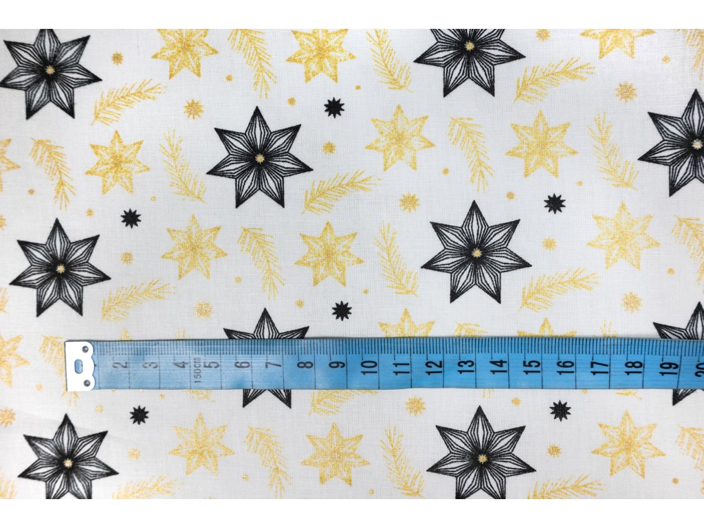 Bavlněné plátno černé a zlaté badyánové hvězdy