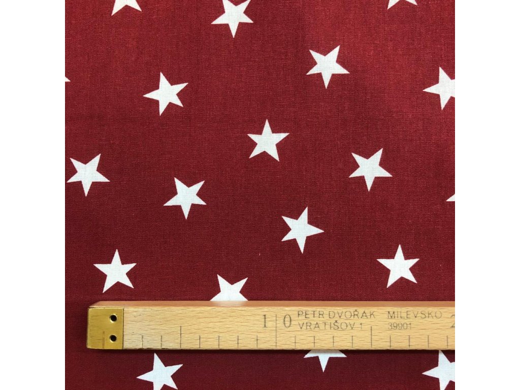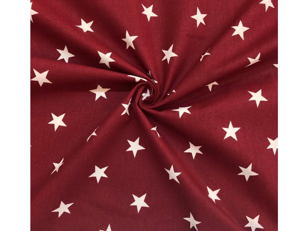 Bavlněné plátno hvězdy bílé na bordó