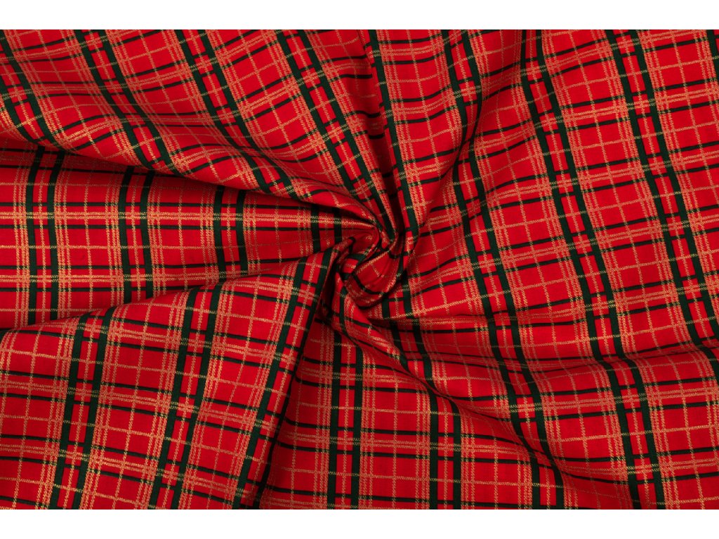 Bavlněné plátno káro červeno-zlaté
