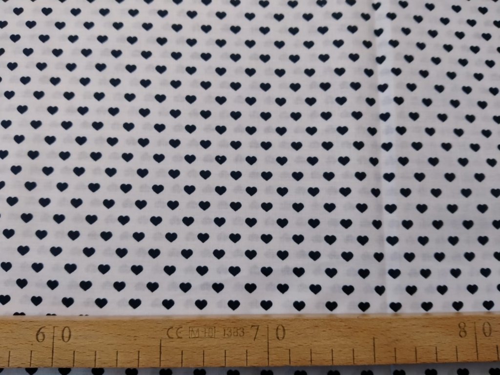Bavlněné plátno modrá srdíčka na bílé