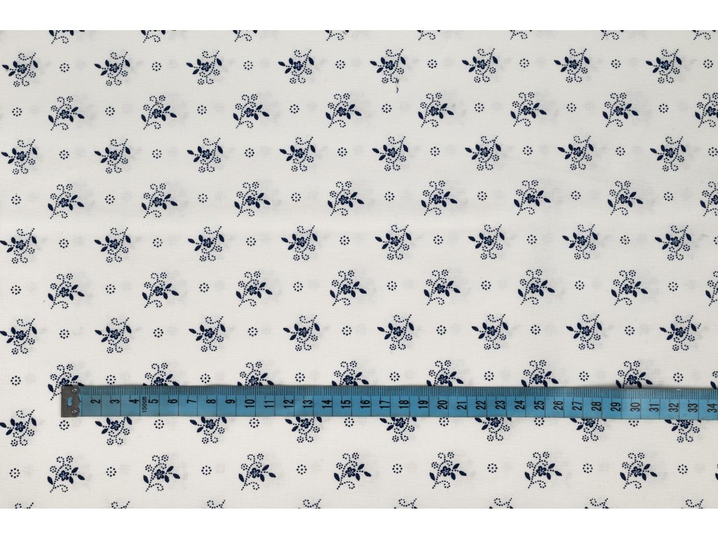 Bavlněné plátno modrotisk - drobné kvítí DOPRODEJ 0,6m