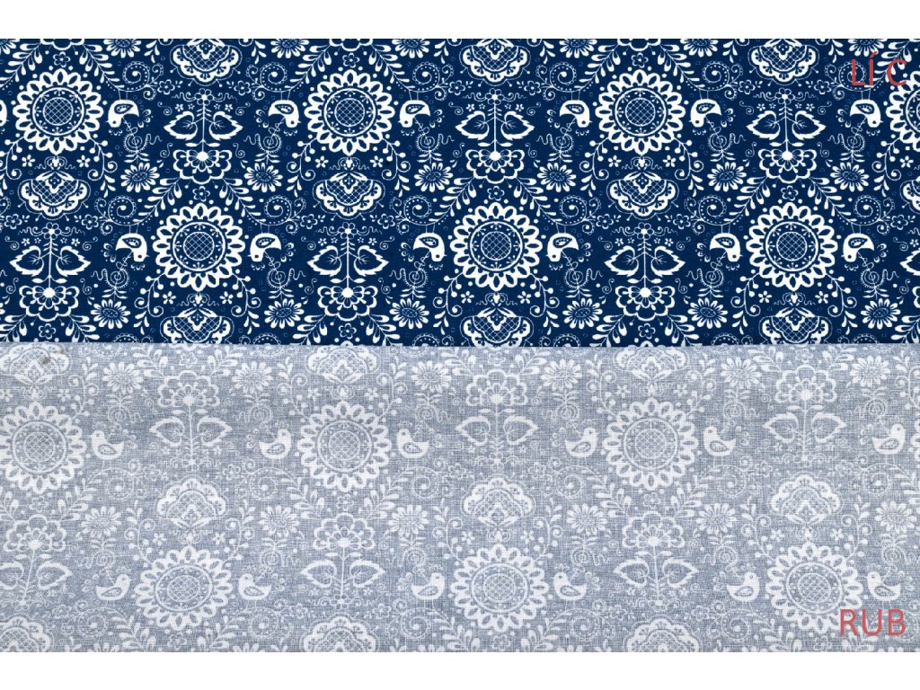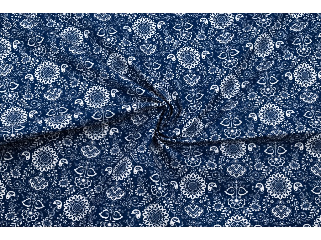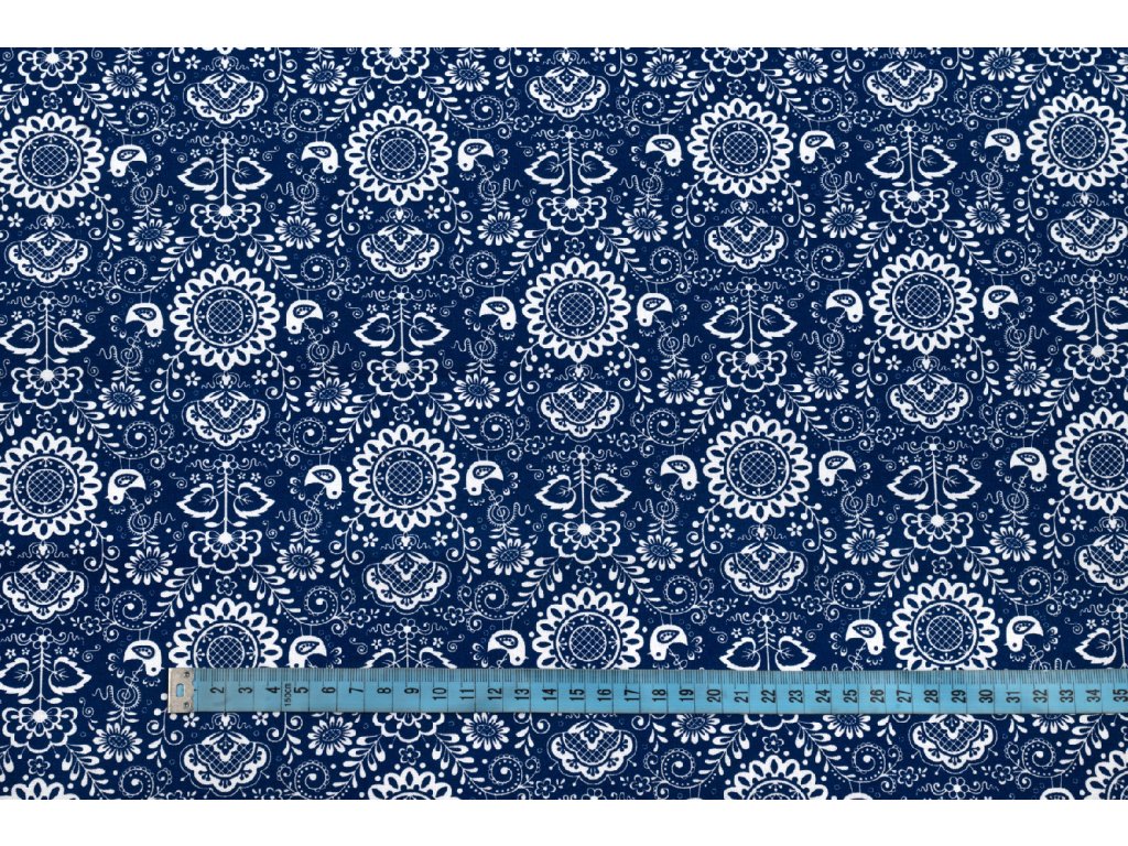 Bavlněné plátno modrotisk modrobílý - folklór