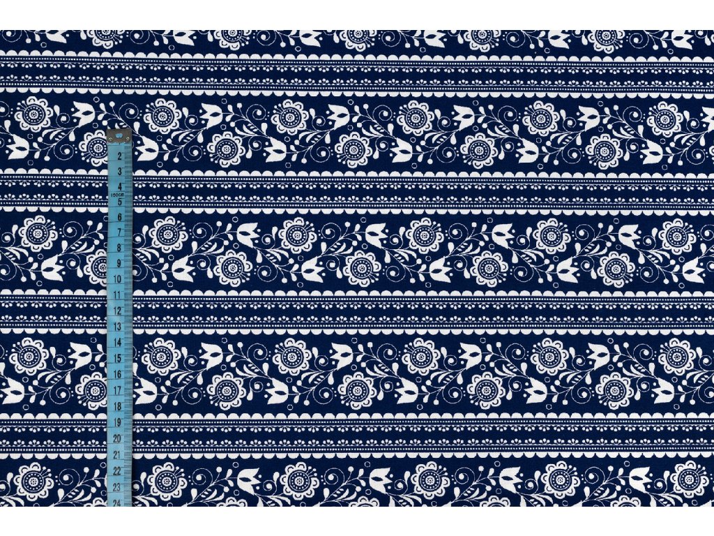 Bavlnené plátno modrotlač na modrej - folklór v pruhoch