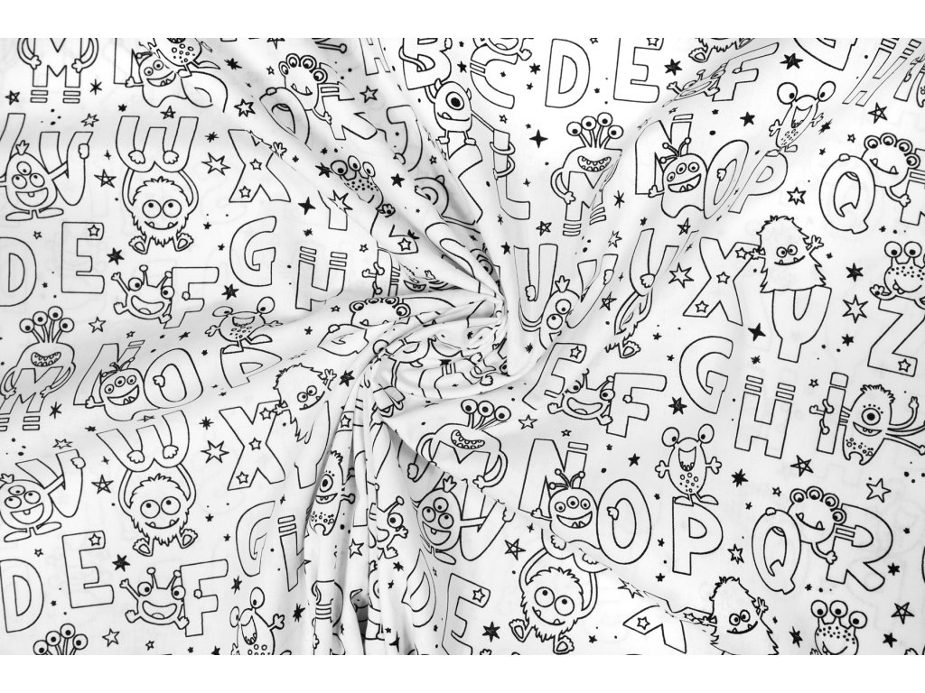 Bavlněné plátno na vybarvování Abeceda s příšerkami