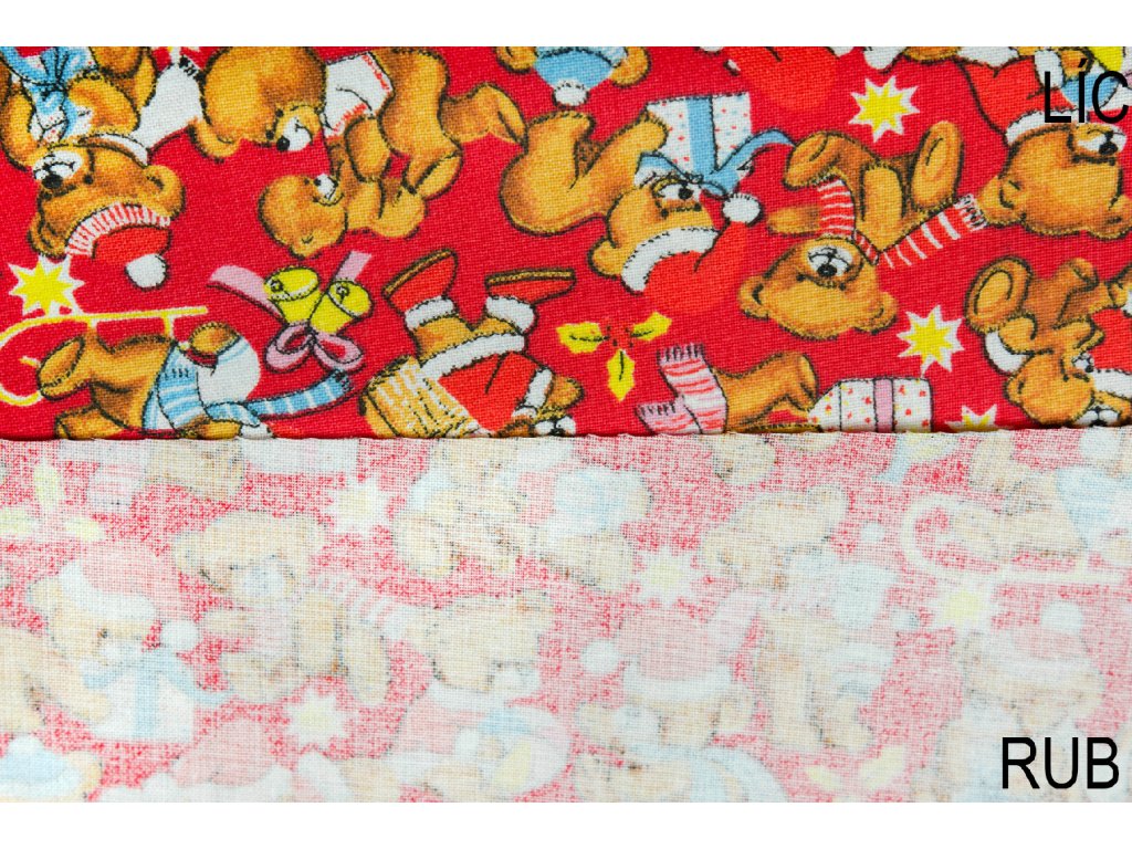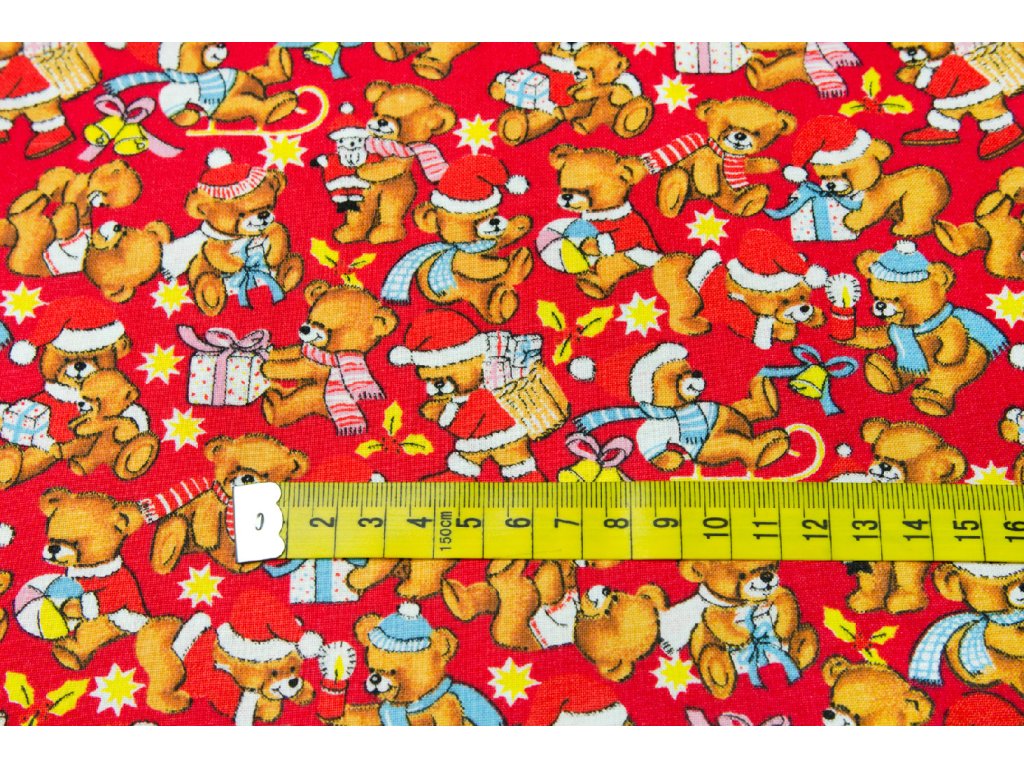 Bavlněné plátno vánoční medvědi na červené