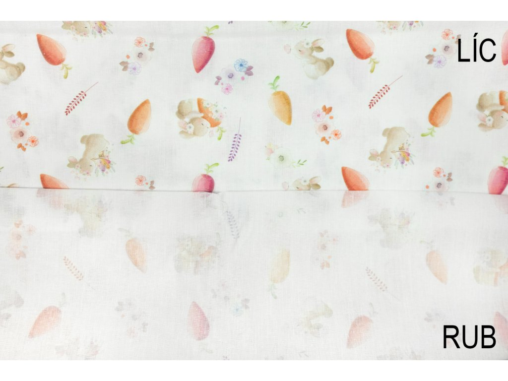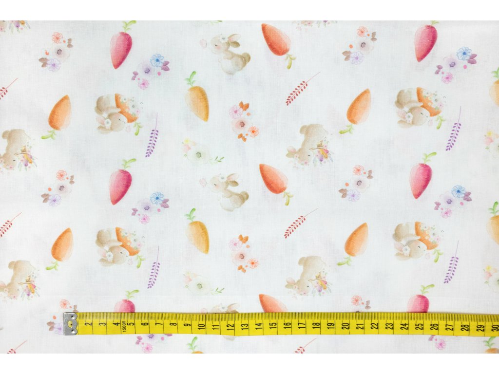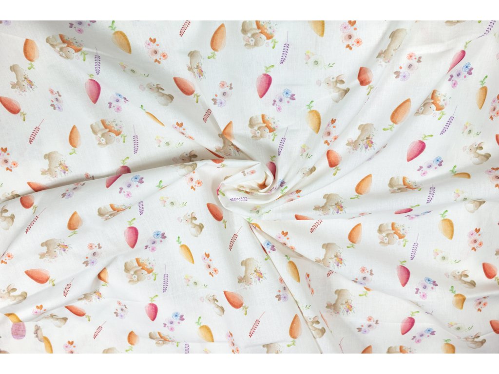 Bavlněné plátno zajíčci, mrkvičky a kytičky