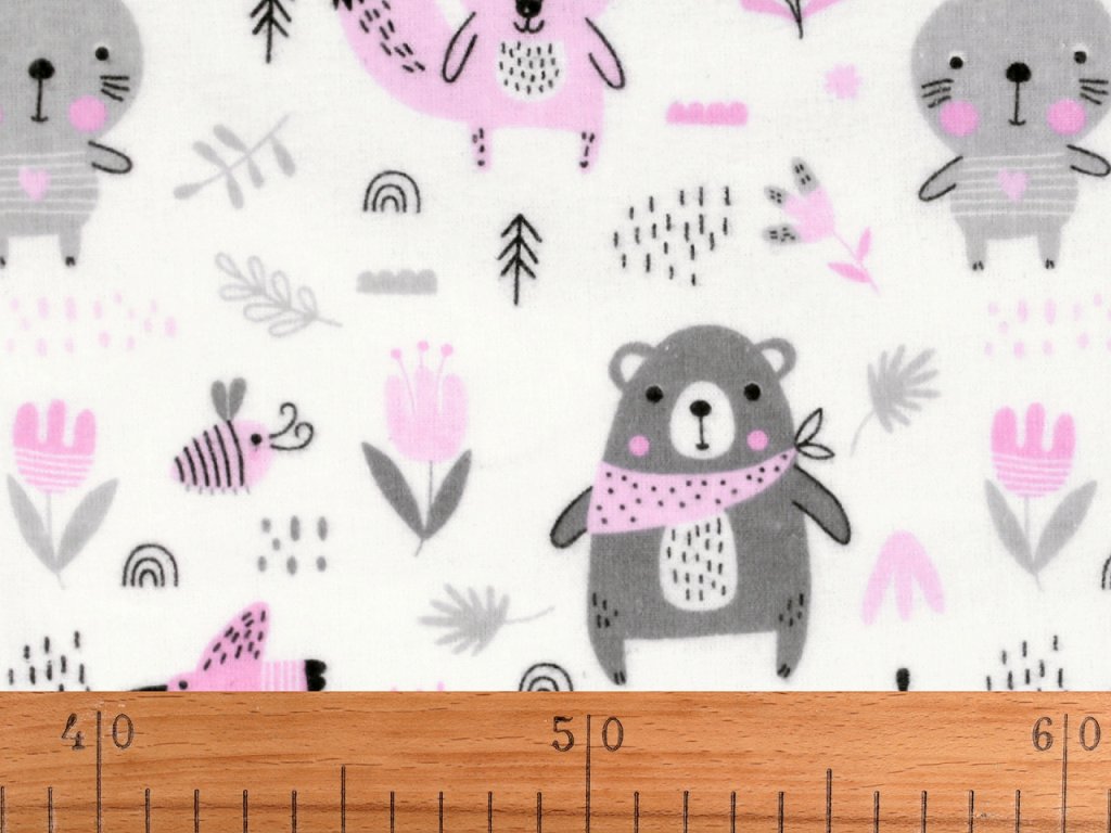 Bavlněný flanel se zvířátky je měkký, hřejivý a příjemný na dotek.