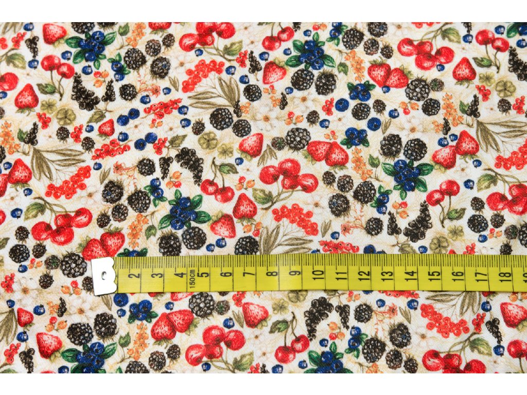 Bavlněný satén zahradní plody drobné digi tisk - Vzor od Mamtex.cz