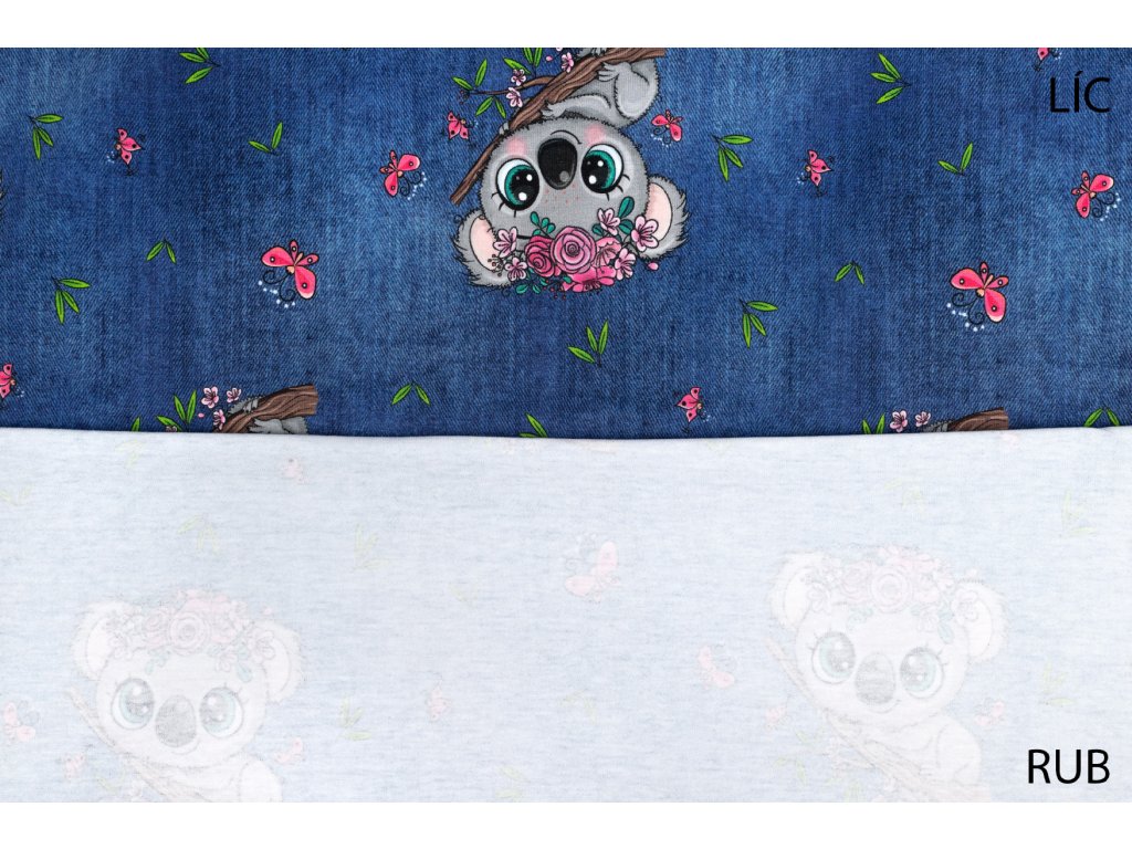 Bavlněný úplet koala na TMAVÉ jeans DOPRODEJ 0,5 m