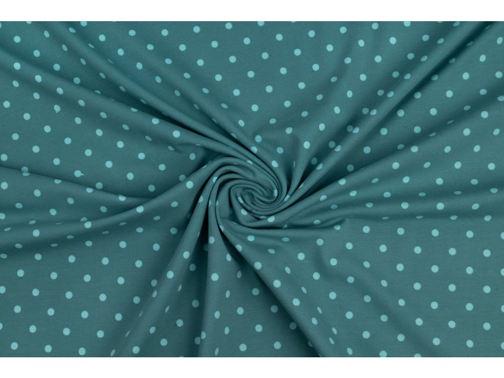 Bavlnený úplet mätové bodky na zelenkavej