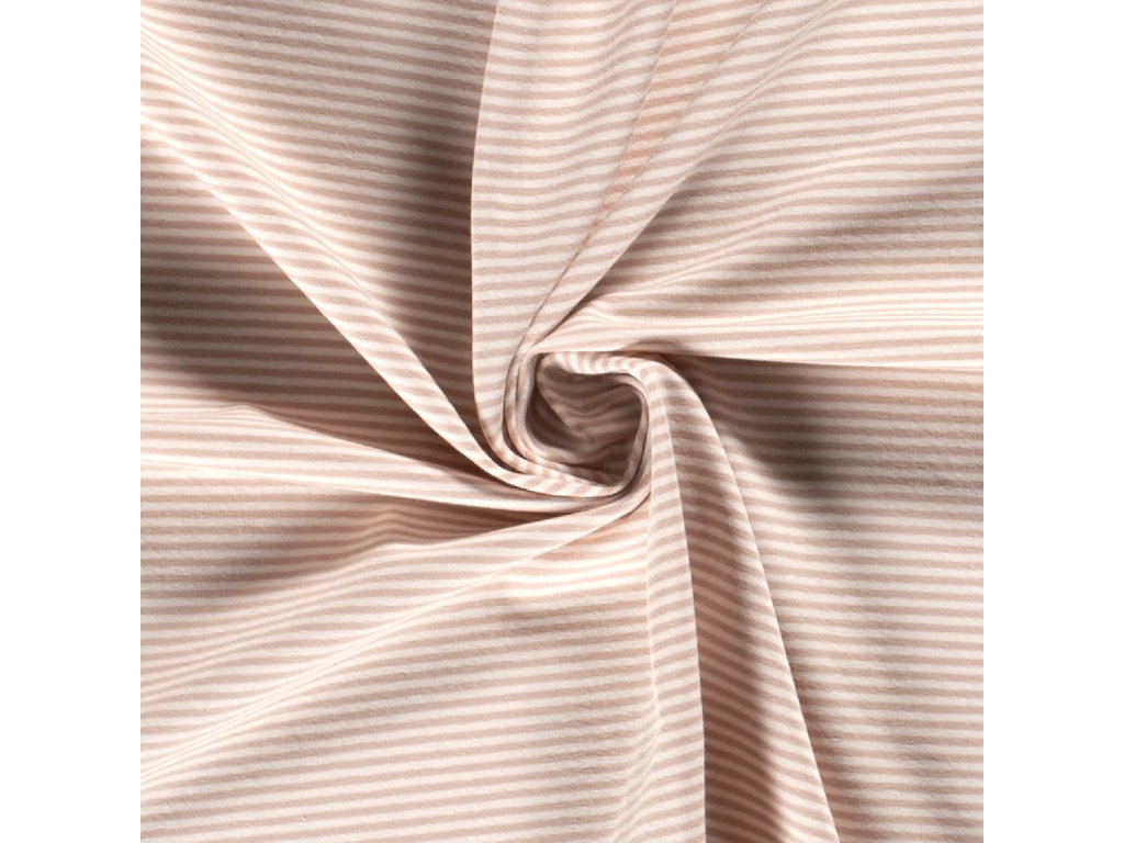 Bavlnený úplet tenký bielo-lososový prúžok