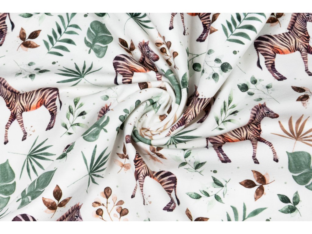 Bavlněný úplet zebra s listy