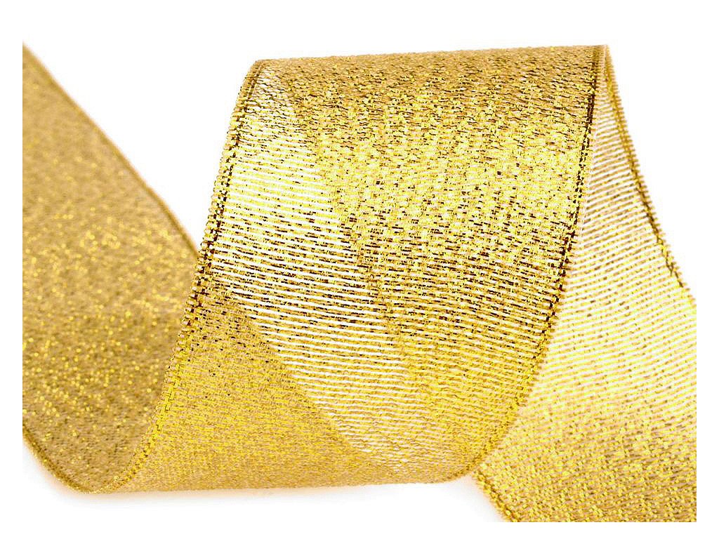 Stuha s lurexem v šíři 38 mm má široké uplatnění. Můžete ji využít nejen k šití, dekoraci, aranžování, ale také s ní můžete elegantně zabalit dárek. Tato stuha má zpevněný okraj bez použití drátku. Její povrch je díky lurexu hrubší a působí luxusněji.