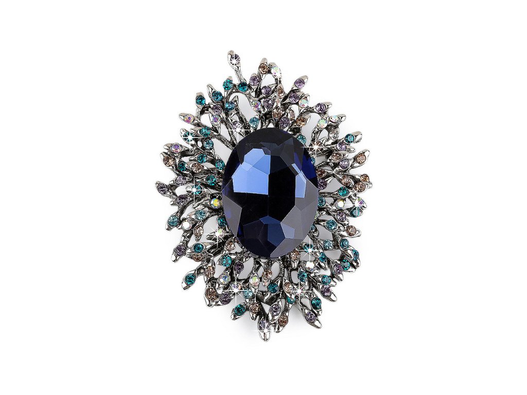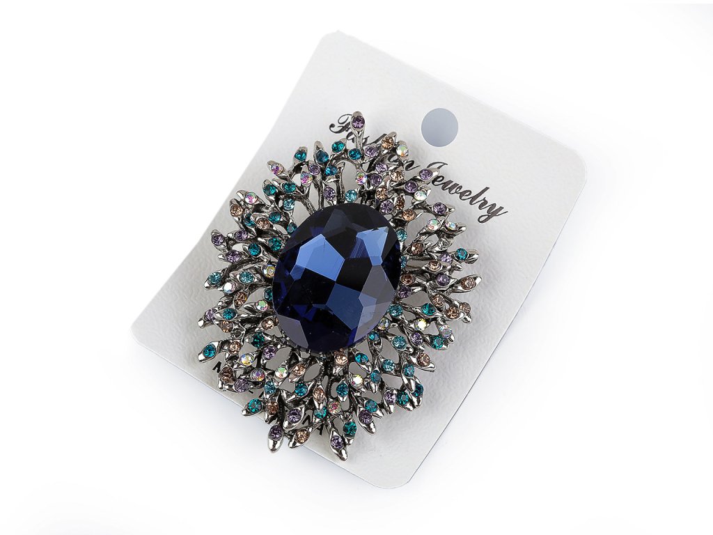 Elegantná brošňa s veľkým kameňom je skvostným kúskom, ktorý očarí každého milovníka elegantných doplnkov. Okamžite upúta pozornosť svojou žiarivosťou a luxusným vzhľadom. Dominantou tejto brošne je výrazný centrálny kameň , ktorý je obklopený jemnými brúsenými kamienkami , ktoré vytvárajú jemné odlesky pri každom pohybe. Na zadnej strane má brošňový špendlík. Môžete ju nosiť na odevoch, čiapkach, klobúkoch, taškách či s ňou môžete zopnúť šatku. Brošňa je na plastovej karte, ktorú je možné zavesiť na predajné stojany.