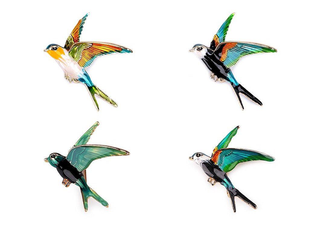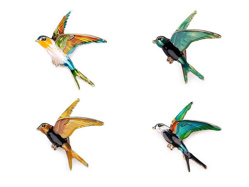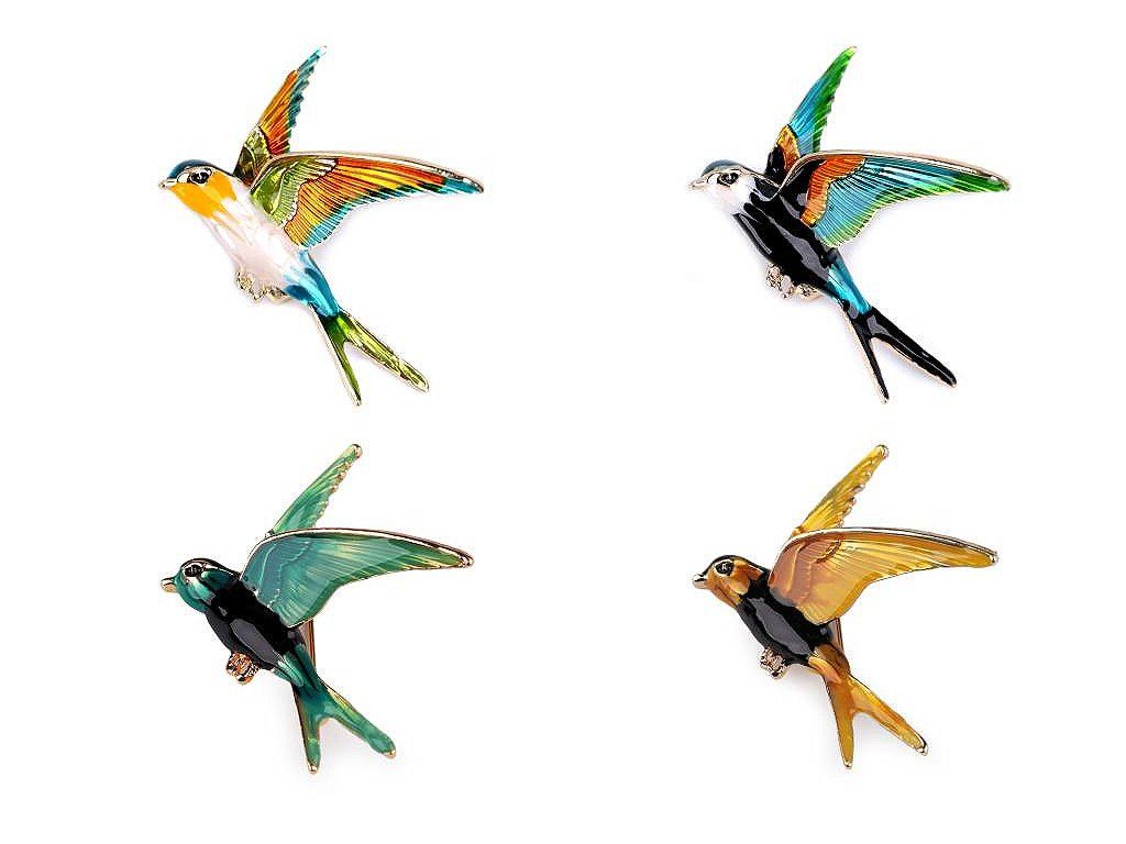 Brož ptáček s barevným smaltem vás uchvátí svou duhovou hrou barev. Je velice elegantní, můžete ji využít na běžné nošení i na společenské události - návštěvy divadel, oslavy apod. Z rubu má brož zavírací špendlík. Můžete ji nosit nejen na oděvech, hodí se i k ozdobení klobouků, tašky či sepnutí šátku.