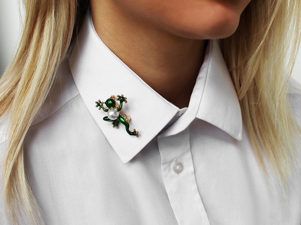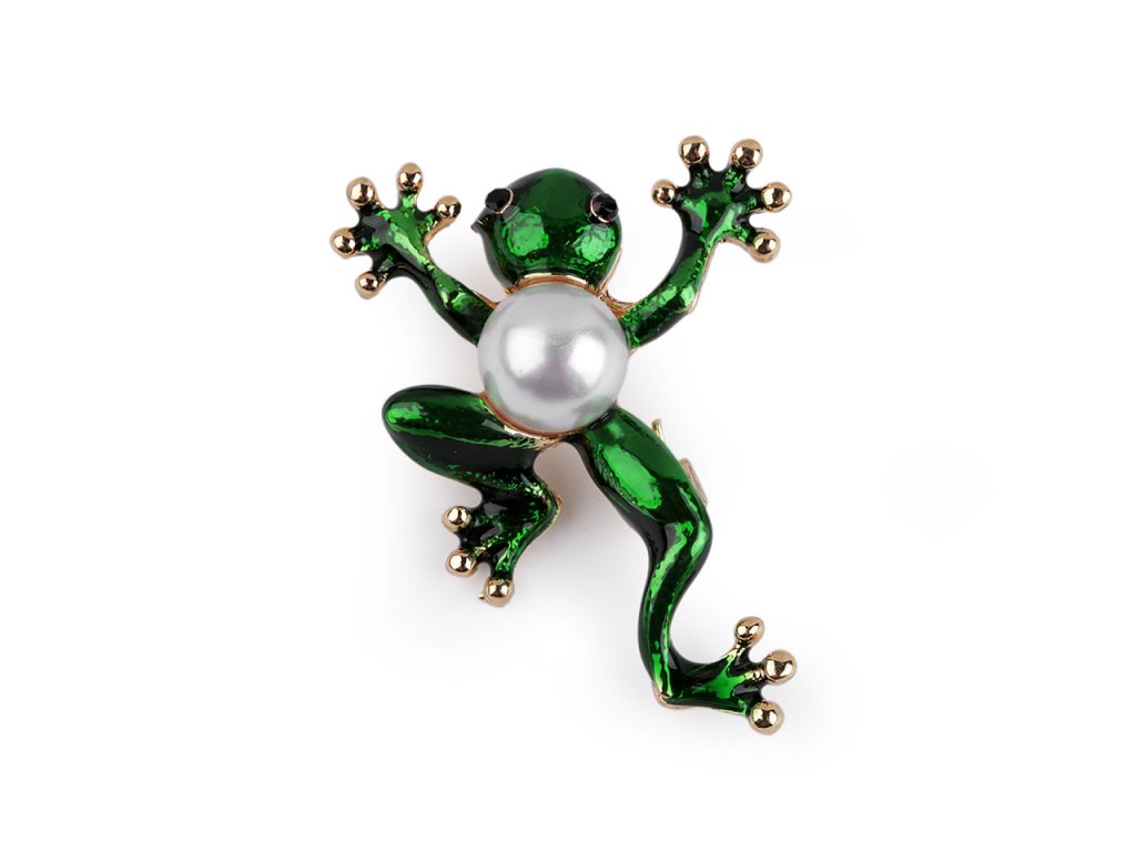 Brož č.3 - žabka je ozdobená perlou.