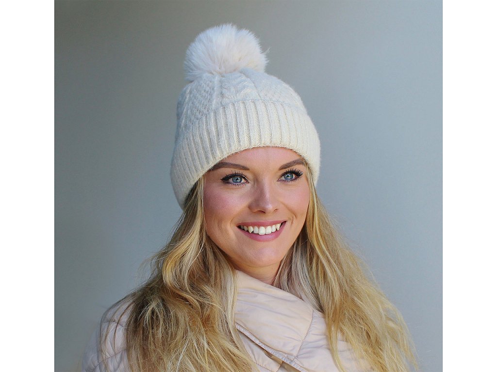 Pletená čepice s bambulí a copánkovým vzorem vás bude hřát celou zimu. Má ohrnutý okraj, uvnitř má jemný plyš, jenž je velice příjemný na dotek. Bambule věrně imituje pravou kožešinu.