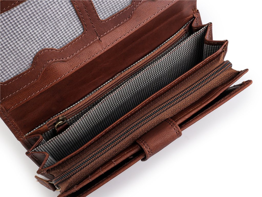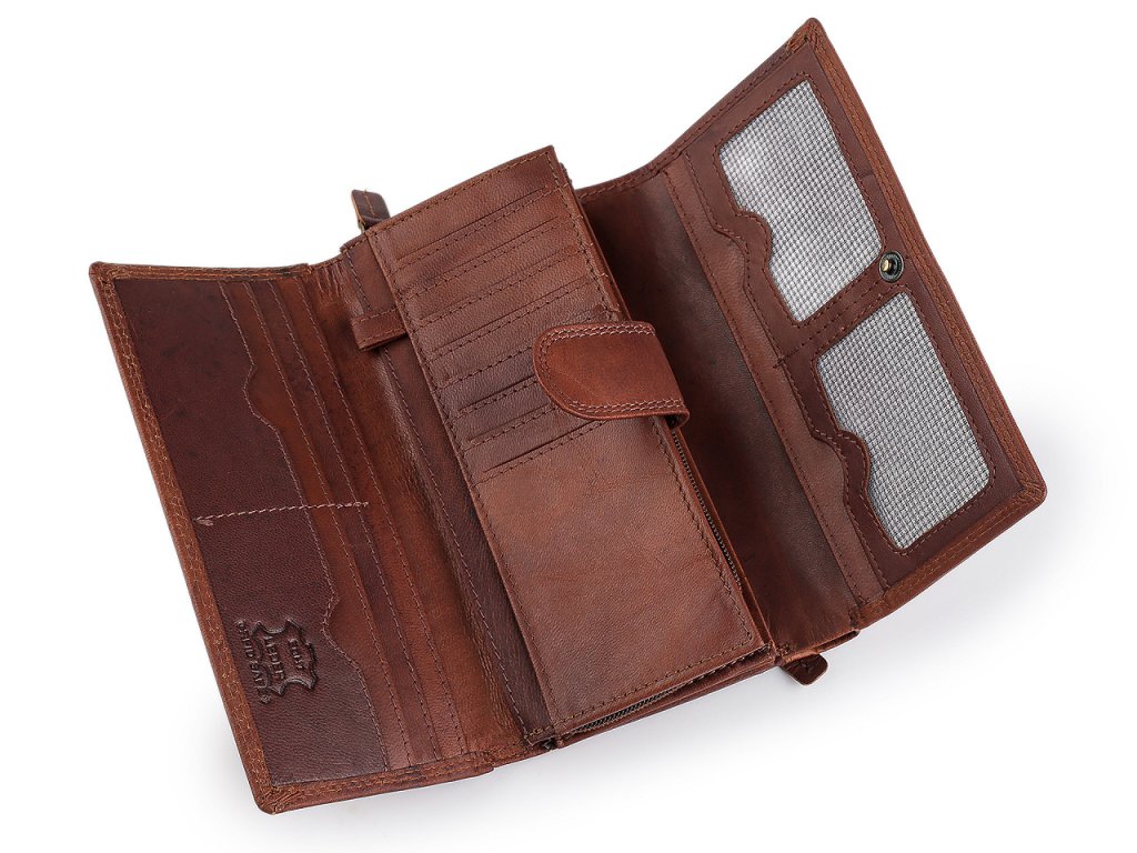 Dámská kožená peněženka má velice kvalitní provedení a chytrý design. Je velmi příjemná na dotek.