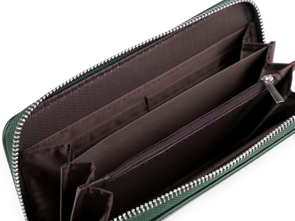 Zapíná se na zip. Uvnitř se nachází tři přihrádky na bankovky a jedna kapsa s otvíráním na zip, sloužící k uschování mincí. Na vnitřních stranách peněženky pak najdete přihrádky k uložení karet či dokladů.