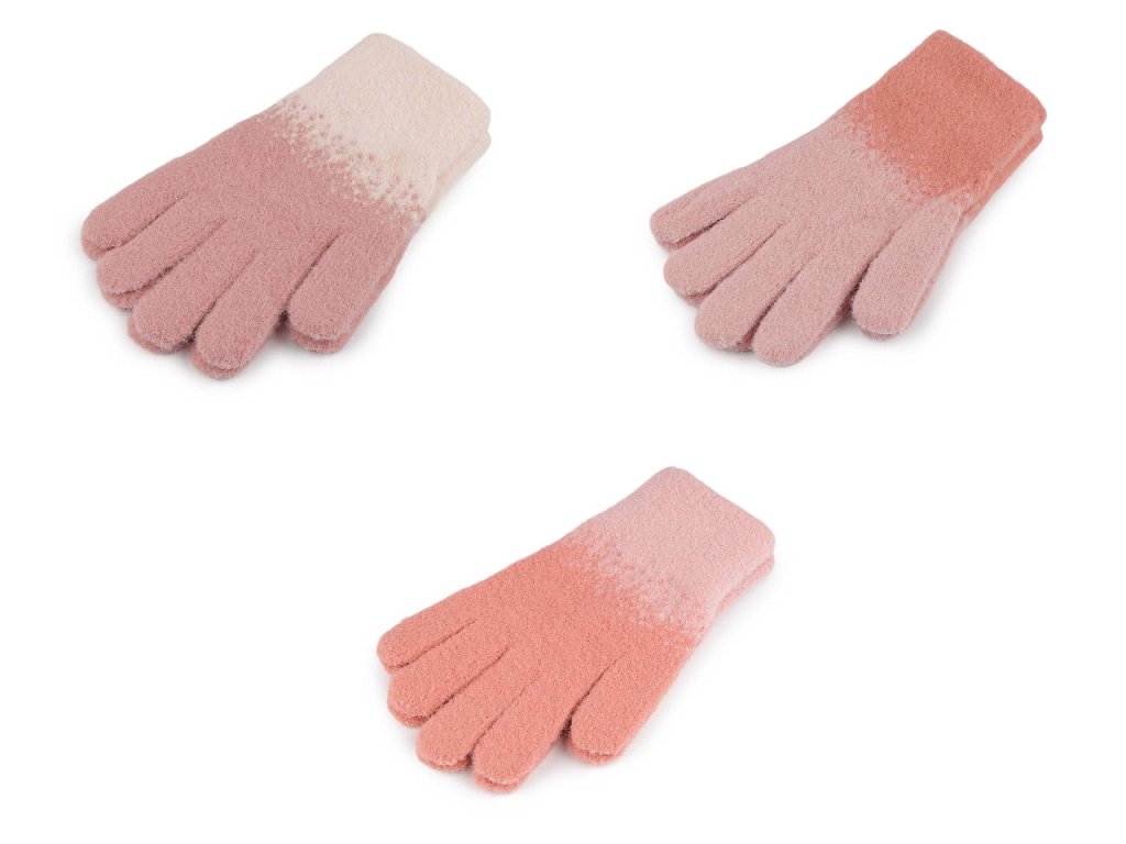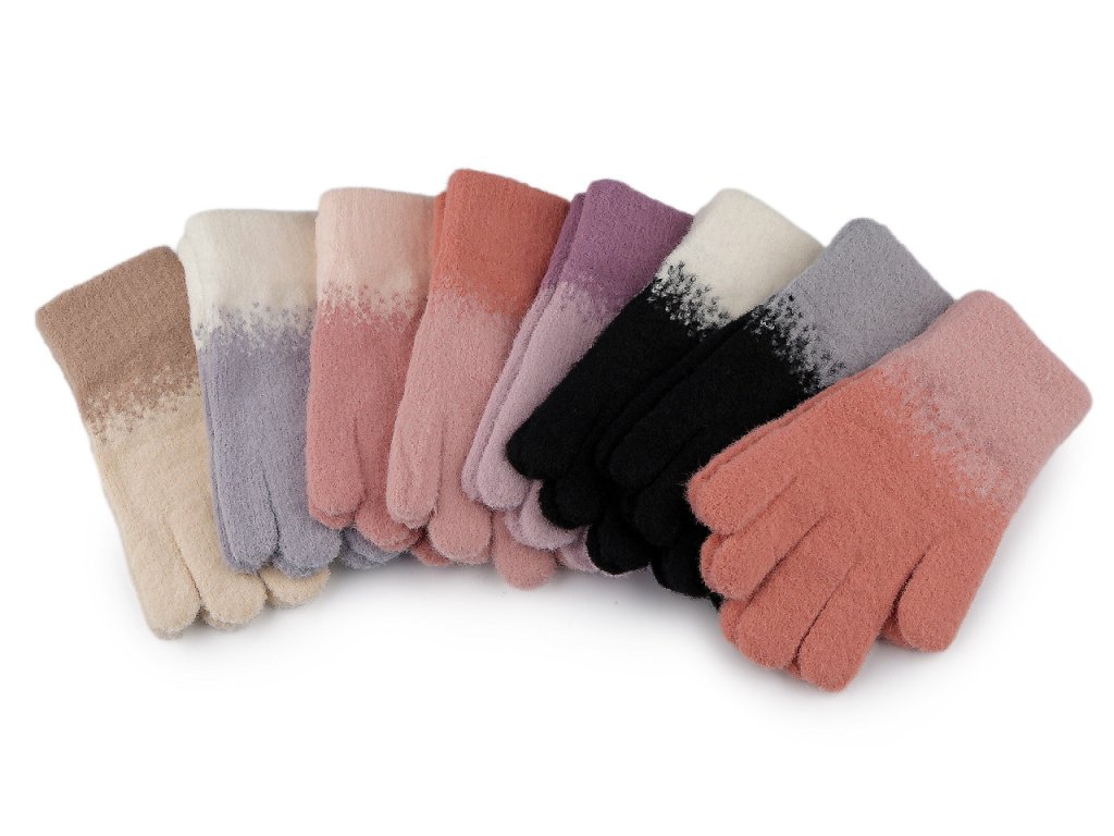 Pleteninové rukavice s barevným přechodem jsou ideálním doplňkem do sychravého podzimního a zimního počasí. Jsou velice oblíbené kvůli jejich extrémní hebkosti, pletenina je s jemným vlasem. Rukavice jsou pružné, ruce se skvěle přizpůsobí, výborně se natahují. Díky pružnému lemu kolem zápěstí pevně drží - nesklouzávají.