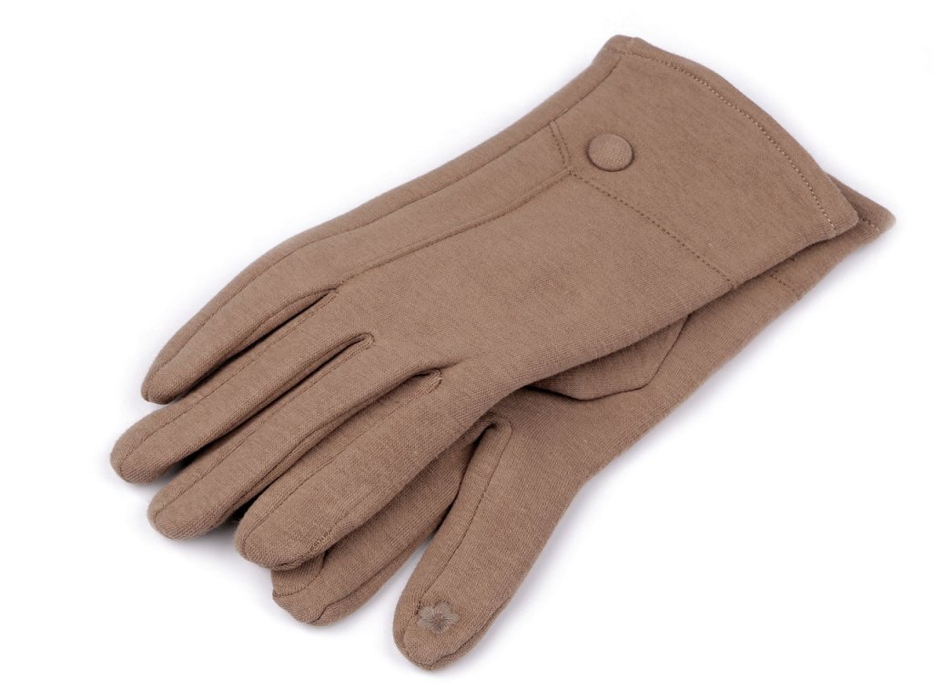 Dámské rukavice ozdobené malým knoflíkem jsou velice elegantní. Teplý pružný úplet se ruce skvěle přizpůsobí. Uvnitř je jemný plyš, jenž je velice příjemný na dotek. Tento módní doplněk se hodí do zimy nebo do chladnějšího podzimního počasí.