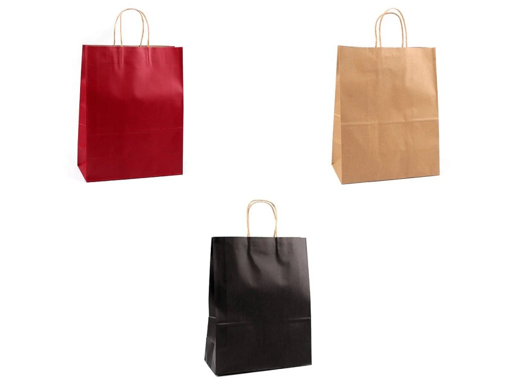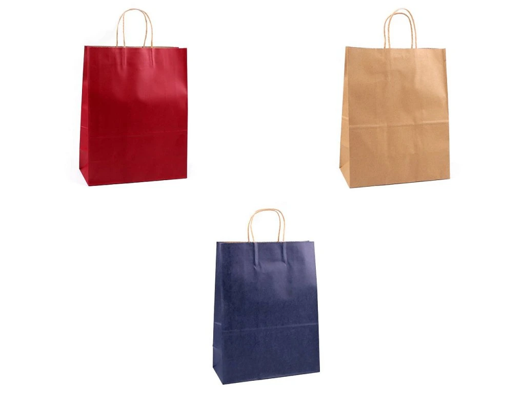 Větší papírová taška vám pomůže rychle zabalit dárek nebo zboží pro vaše zákazníky. Je vyrobená z pevného papíru. Ucho tašky je z krouceného papírového provázku.
