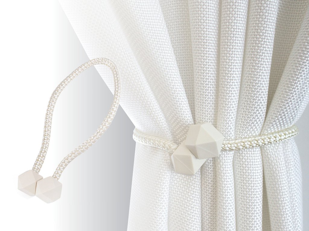 Dekoračný úväz zo splietaných šnúr je zakončený magnetmi, vďaka ktorým dobre drží. Využijete ho na ozdobenie a zopnutie závesov či záclon.