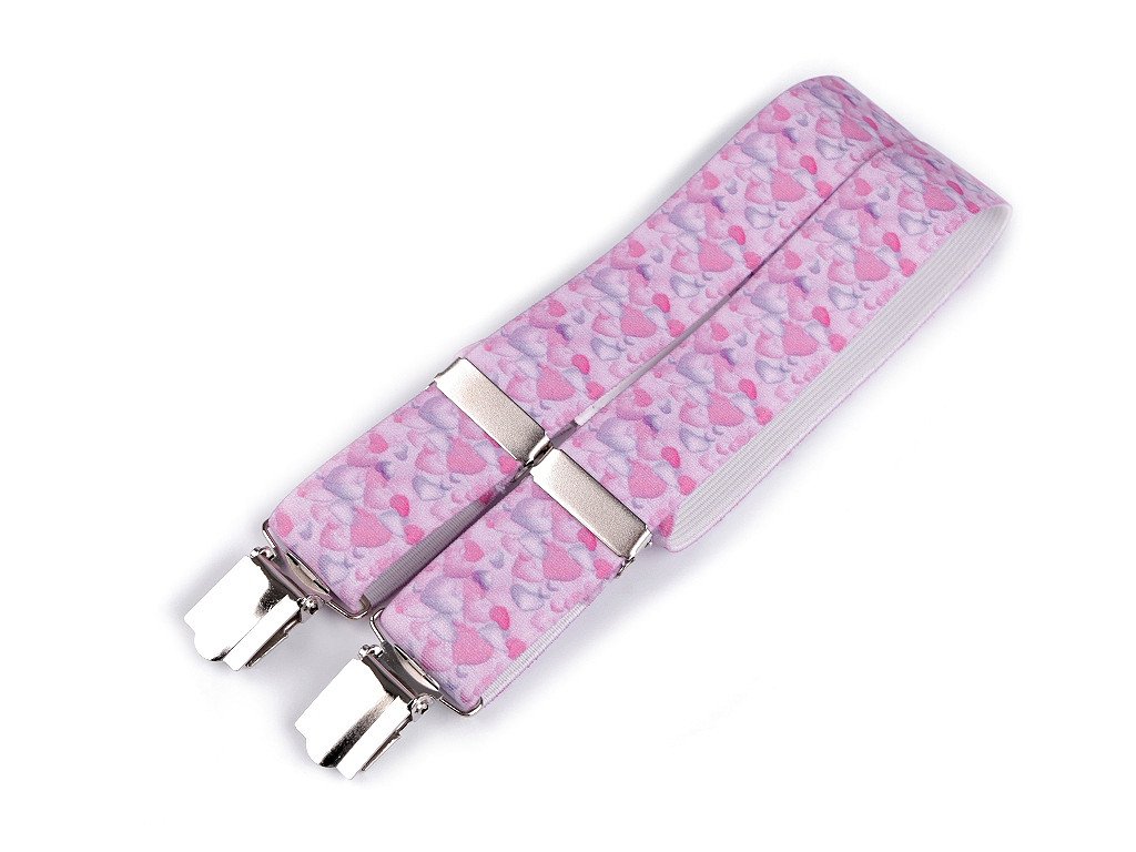 Dětské šle o délce 60 cm a šířce 2,5 cm s různými potisky. Popruhy jsou různě barevné. Natištěné motivy jsou kvalitní, neloupou se ani neodírají. Šle jsou vyrobené ze 100% polyesteru. Originální balení obsahuje 10 ks šlí v náhodném barevném mixu. Jedná se o kvalitní výrobek české výroby, šle se přichycují pomocí kovových žabek.