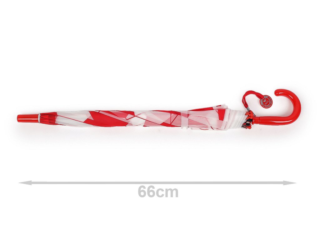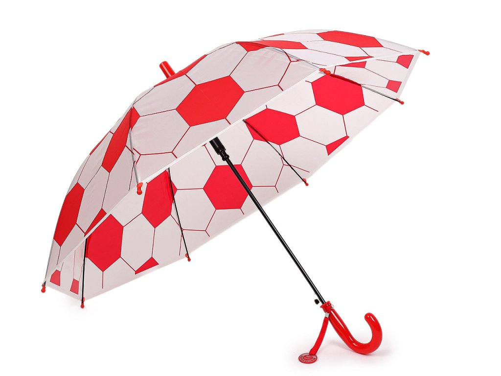 Dětský vystřelovací deštník s fotbalovým motivem potěší hlavně malé fotbalisty. je ideálním společníkem pro malé sportovní nadšence. Díky svému atraktivnímu designu, který připomíná fotbalový míč, si ho děti okamžitě oblíbí. Potah je průsvitný, na rukojeti má deštník visačku, na kterou můžete napsat jméno dítěte. Má klasickou tyč zakončenou pevnou rukojetí. Konstrukce deštníku je z pružných lamel a tvoří osm polí.