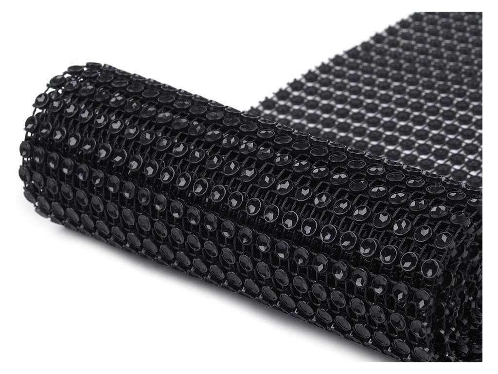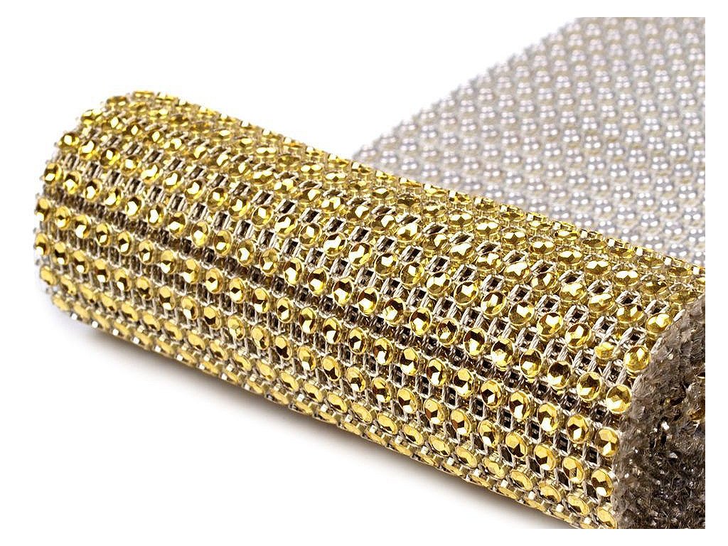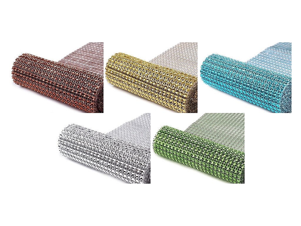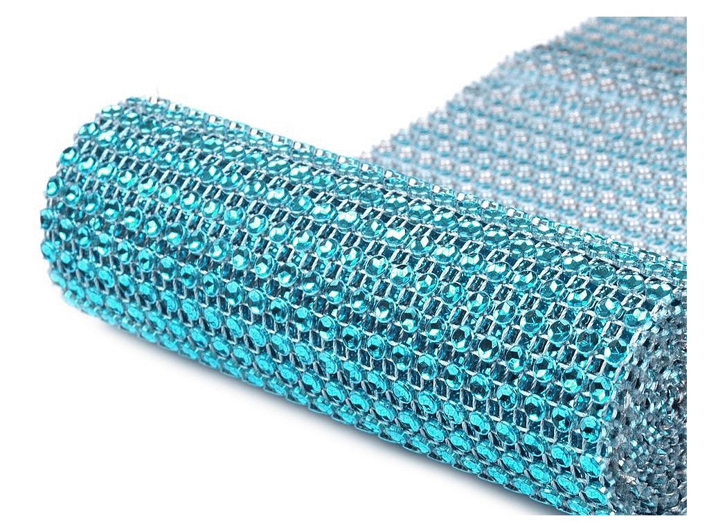 Zajímavá borta s barevnými plastovými očky o Ø 4 mm. Očka mají uvnitř vyobrazenou hvězdu, která díky lesku barvy věrohodně připomínají kamínky. Jednotlivé komponenty jsou spojeny pevnou nití. Rubová strana prýmku má vždy stříbrnou barvu. Třpytivý prýmek našijte na šaty a vytvořte originální model.