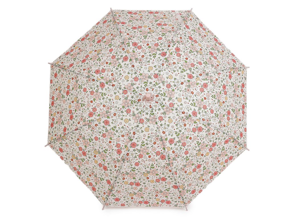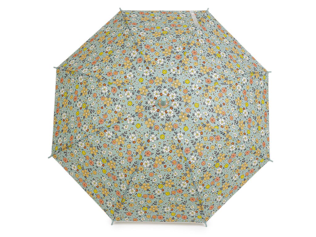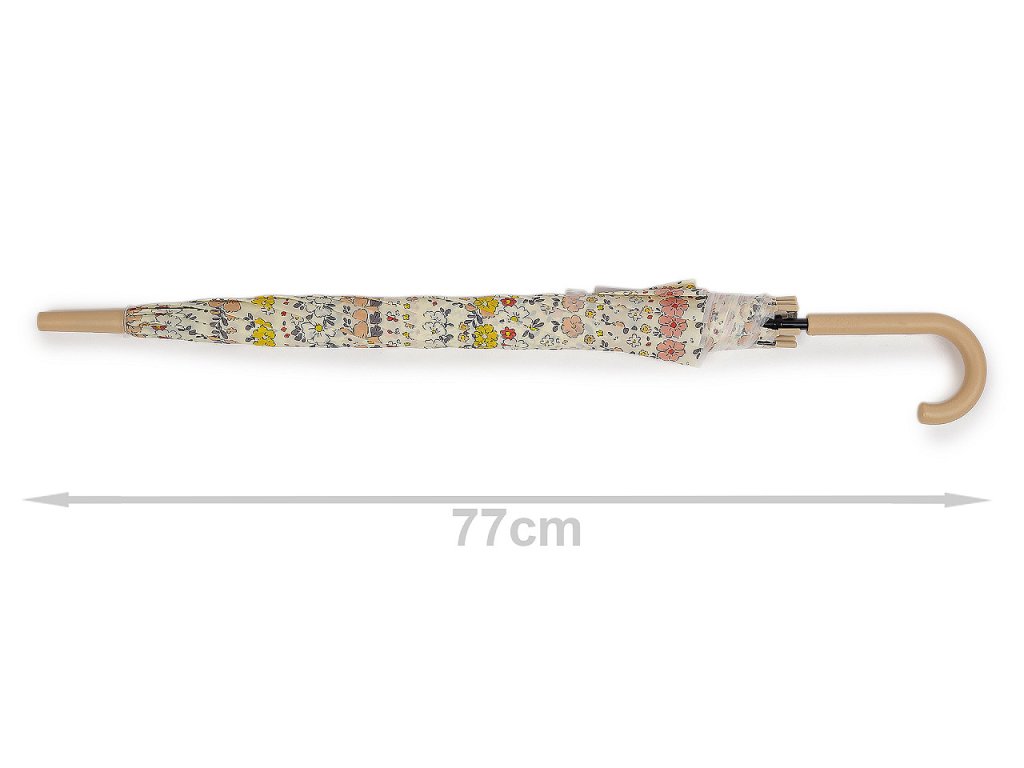Dívčí vystřelovací deštník s motivem květů je ideálním doplňkem pro každou mladou slečnu, která chce zůstat v suchu a zároveň rozzářit i ten nejzamračenější den. Potah je průsvitný, deštník má klasickou tyč zakončenou pevnou rukojetí. Konstrukce deštníku je z pružných lamel a tvoří osm polí. Díky pevné konstrukci je deštník odolný proti větru a ideální pro každodenní použití.