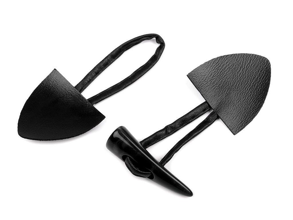 Dizajnové zapínanie z eko kože s olivou zdobí prešitie v podobe labiek . Využijete ho na kabáty, vesty, svetre, mikiny a pod. Je vhodné aj na šitie duffle coat.